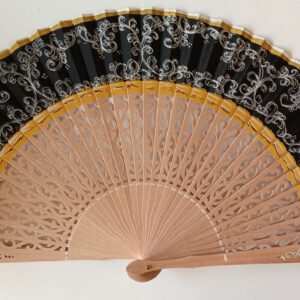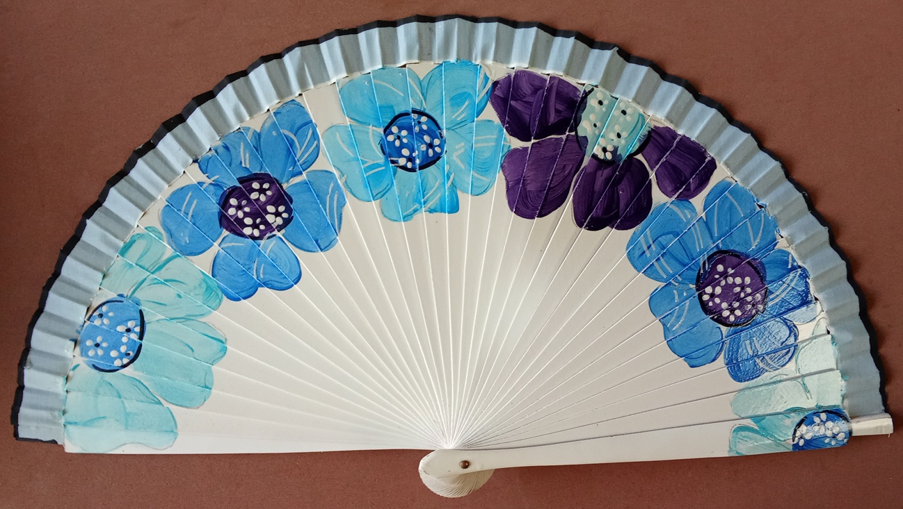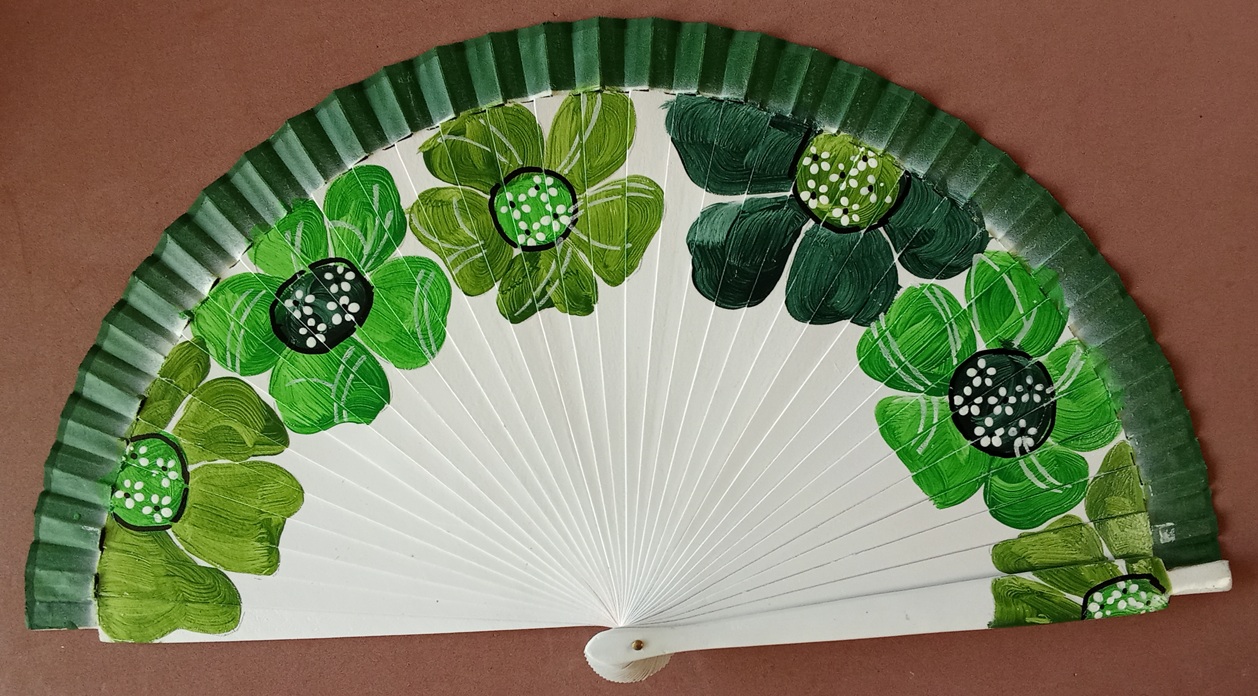 Abanico de madera, lacado color blanco y pintado a mano por las dos caras