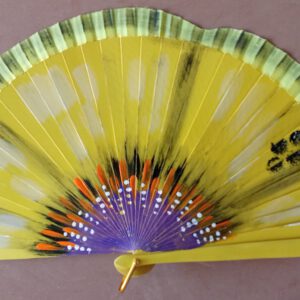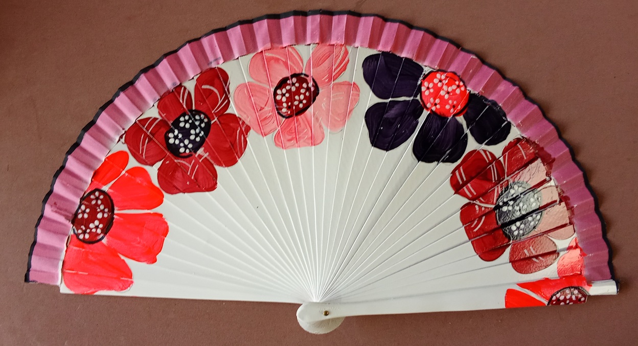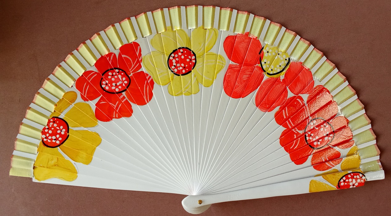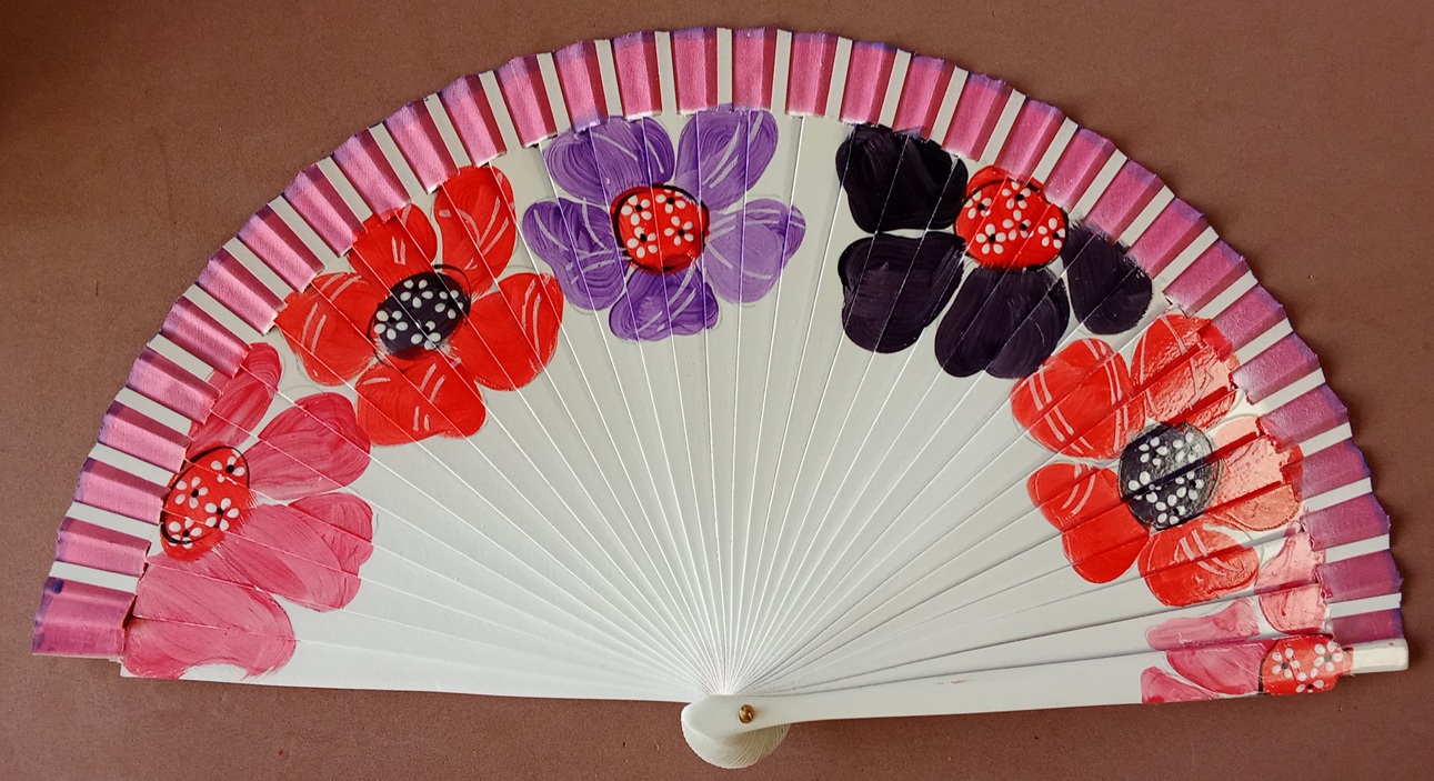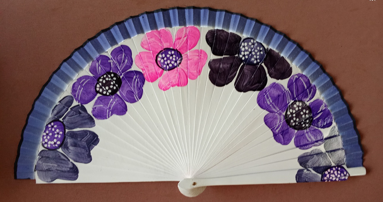 Abanico de madera pintado a mano por las dos caras. 23 cm.