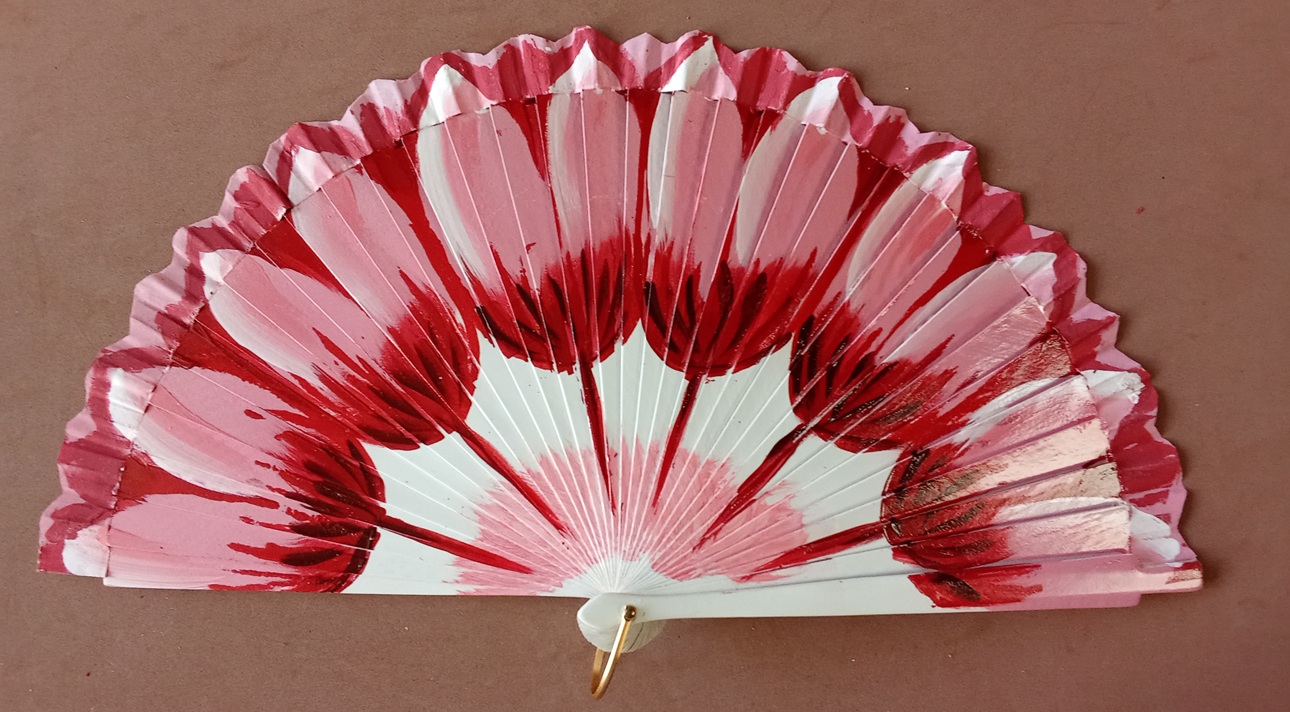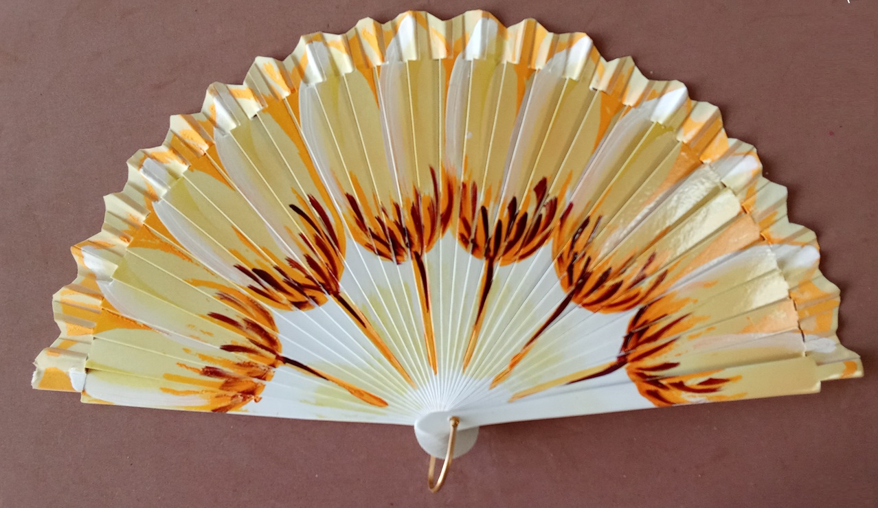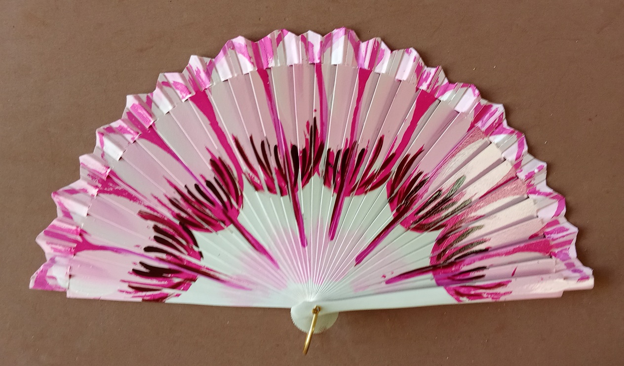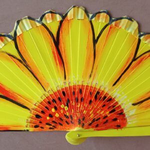 Abanico de madera pintado a mano por las dos caras. 23 cm.